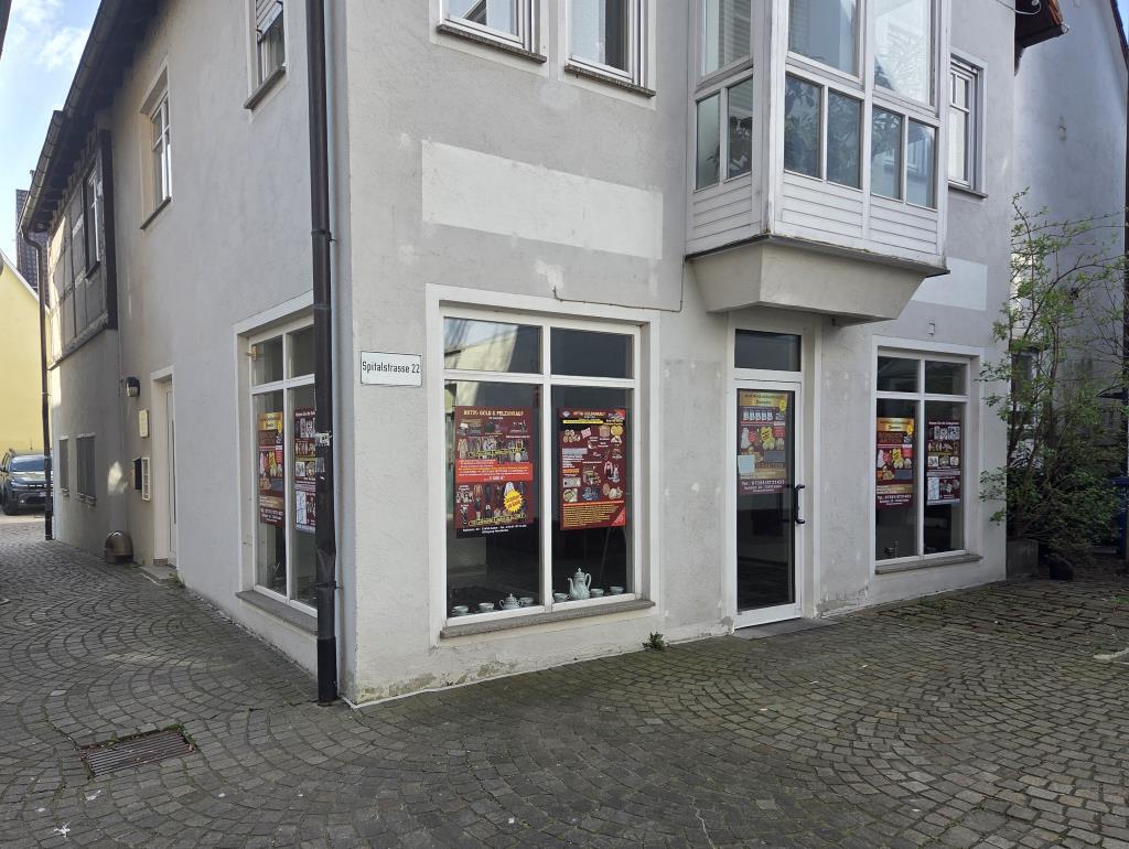 Die Immobilie bietet einen Raum mit einer Fensterfront zur Fußgängerzone, ein separates WC (Personal) sowie einen Kellerraum.