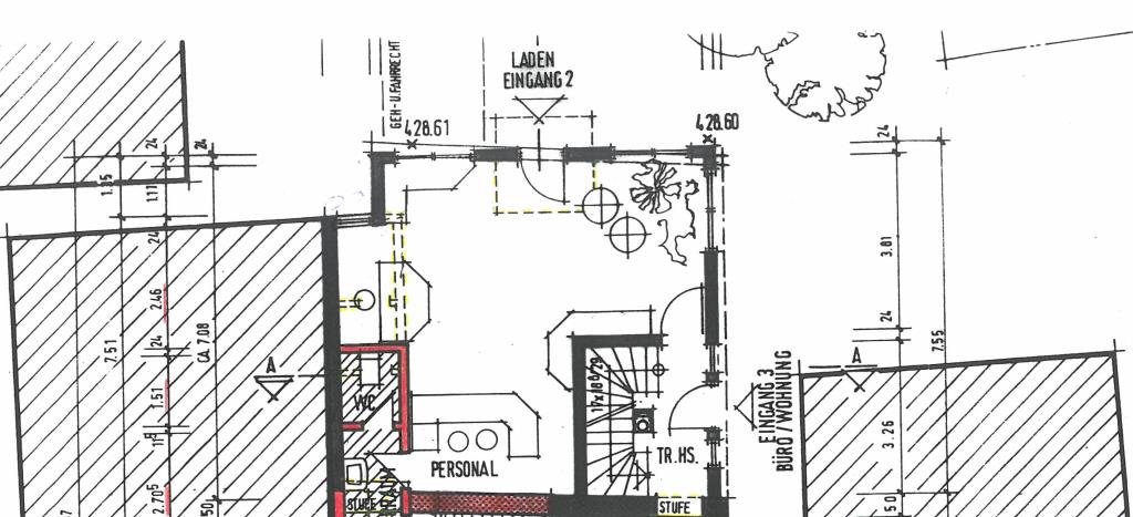 Die Gewerbeeinheit befindet sich im Erdgeschoss des Mehrfamilienhauses und kann sowohl für Büros, Einzelhandel, Praxis oder dergleichen genutzt werden.