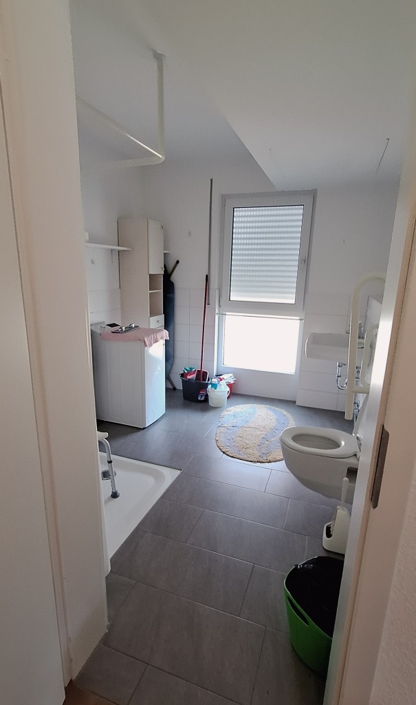 Die Wohnung hat zwei Schlafzimmer, ein Wohn-/Esszimmer mit Zugang zur Terrasse, eine Küche (Einbauküche kann von der jetzigen Mieterin erworben werden), ein Tageslichtbad mit Dusche, ein Abstellraum und ein Gäste-WC.